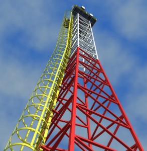 Прожекторные мачты ПМС производятся в разных вариантах исполнения. В этом варианте осветительной конструкции стойка выполняется из металла.