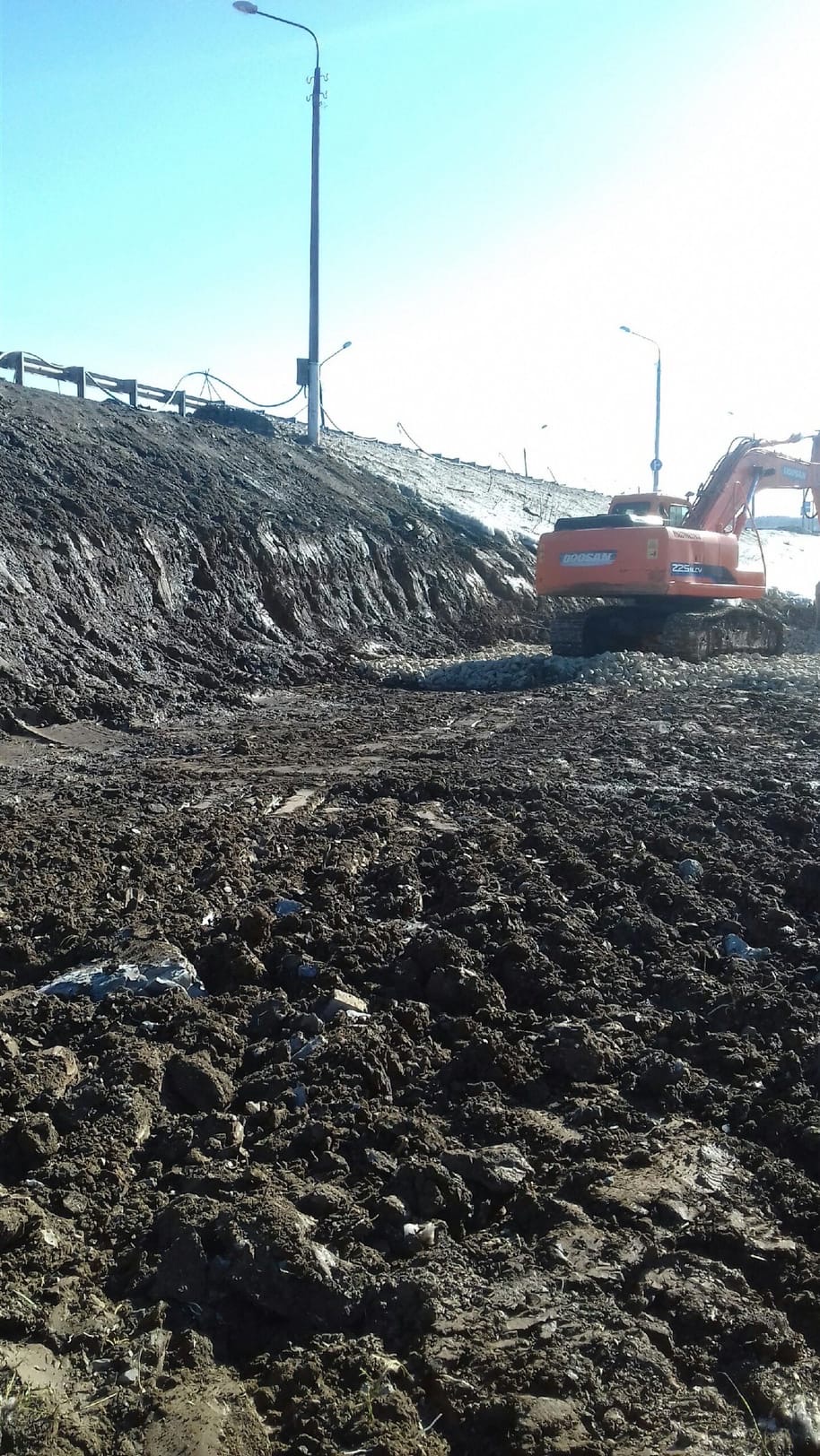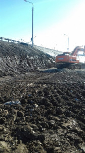 Улан-Удэ. Чусовской мост. Строительство дорожной развязки в Пальниках. Подготовка площадки для устройства шпунтовой подпорной стенки.
